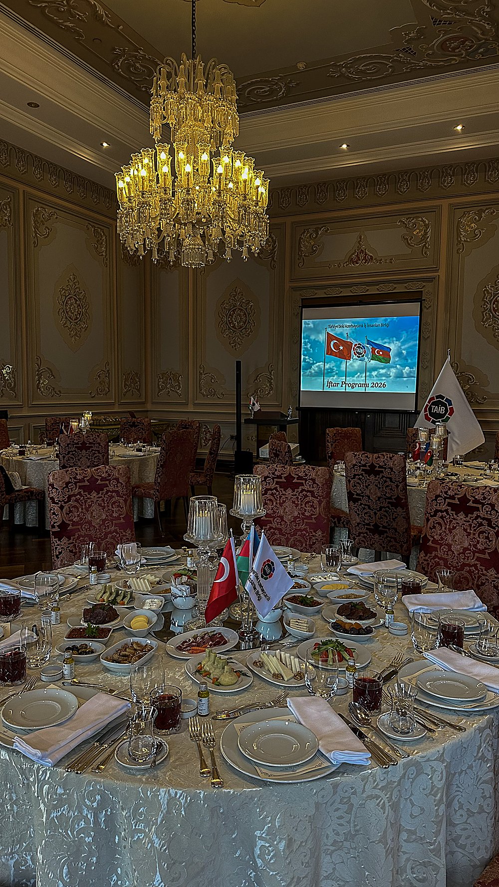 Türkiye’deki Azerbaycanlı İş İnsanları Birliği (TAİB), 11 Mart 2026 tarihinde İstanbul Çırağan Sarayı’nda düzenlenen iftar programında üyelerini ve değerli misafirlerini bir araya getirdi. Ramazan ayının birlik, dayanışma ve paylaşma ruhunun hissedildiği gecede iş dünyasının temsilcileri samimi bir ortamda buluştu. Programa TAİB üyeleri ve çok sayıda davetli katıldı.